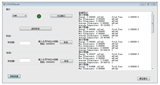 軟件具有標定儀器,和讀取數據的功能。如果沒胡專用標裝光源,禁止點擊開始標定操作。點擊讀取數據后,會讀出最近歷史數據(最多100次),并保存在D盤根目錄下。存儲為.txt格式。