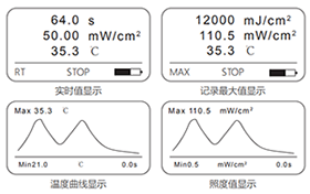 1,真正的智能UV能量計,大液晶直接顯示溫度及強度曲線。
